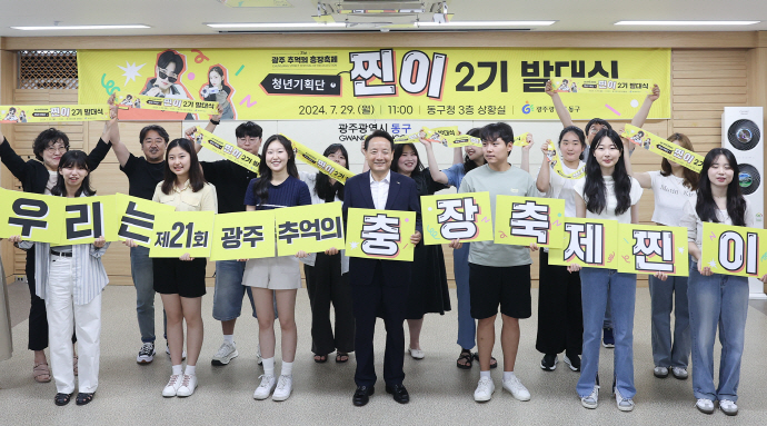 광주 동구(청장 임택)는 지난 29일 ’제21회 광주 추억의 충장축제‘ 개최 기간 동안 활약할 청년기획단 ‘찐이’ 2기 발대식을 갖고 본격적인 활동에 돌입했다고 밝혔다.