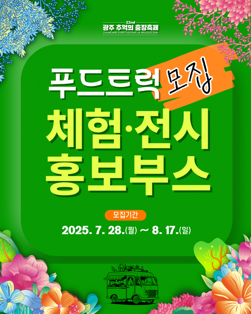 새로운 추억을 만들어갈 수 있는 ‘전시, 체험, 홍보 부스 및 푸드트럭’ 운영 단체를 다음과 같이 모집하오니 많은 관심과 참여 바랍니다.